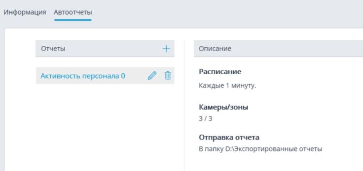 - Автоотчеты, который позволяет настроить автоматическую отправку отчетов для 8 модулей видеоанализа: распознавание лиц Light/Complete/Basic, подсчёт посетителей, 3D-подсчёт посетителей, распознавание автономеров Light/Complete, контроль активности персонала