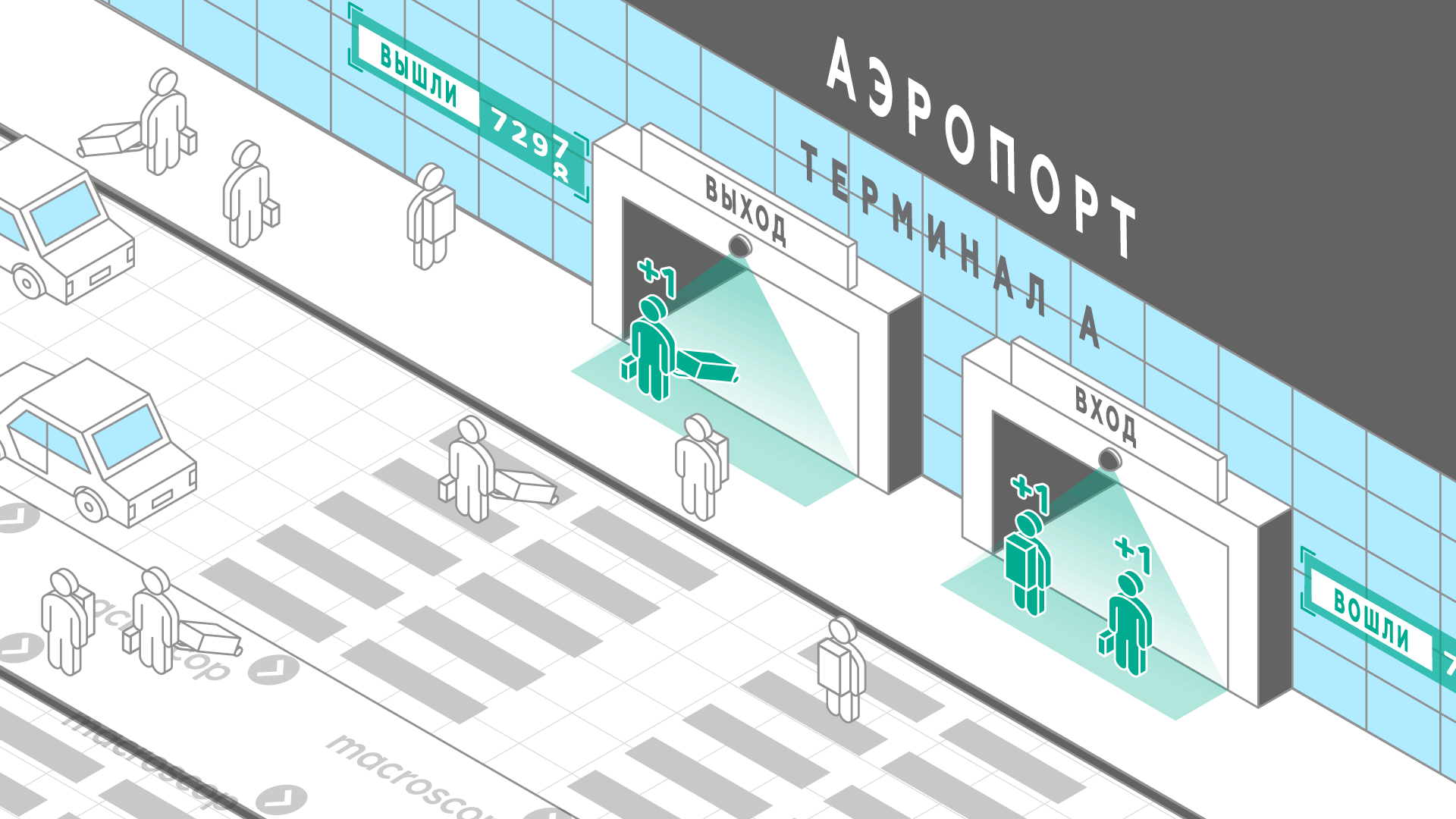 Позволяет определять количество посетителей для подсчета общего трафика, анализа посещаемости аэропорта по месяцам, дням недели, часам